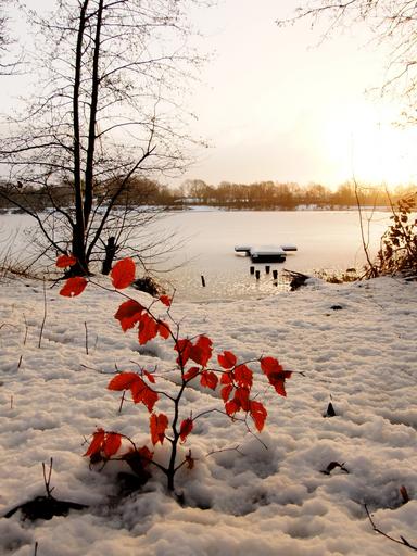 Keywords: ice leaves red leaves water cold lake frozen snow winter trees landscape wilderness scenery natural wild outdoor environment scenic land nature season snowy snowfall
