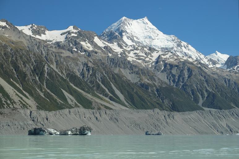 Keywords: Icebergs on Tasman Glacier Lake in front of Aoraki Mount Cook.jpg Big icebergs on Tasman Glacier Lake in front of lateral moraine wall Aoraki / Mount Cook in the background Middle Peak on the left High Peak on the right ; Mt Tasman peeking out on the far right further away therefore appearing much lower due to perspective Own 2016-01-05 Pseudopanax wikipedia en 43 41 10 S 170 10 53 E Aoraki/Mount Cook Tasman Lake Mount Tasman Lateral moraines in New Zealand |