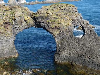 Keywords: iceland coast atlantic sea cliff ocean nature rock rocky coast volcanic rock volcanic snaefellness snæfellsnes peninsula goal opening hole
