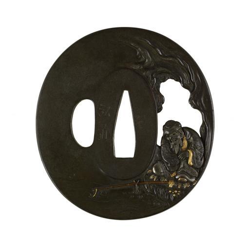 Keywords: Ichiyôsai Hironao - Tsuba with Taikobo (Ch Tai Gongwong) Fishing without Bait - Walters 51191.jpg At the right of this tsuba sits the sage Taikôbô Ch Tai Gongwang fishing His tea pot and basket are sitting behind him on the reverse Taikôbô did not use bait because he did not actually want to catch fish He used fishing as an excuse to think about scientific questions He met 12th-century BC emperor Wu Wang when the emperor was hunting and Taikôbô was fishing The emperor was so impressed with Taikôbô that he asked him to serve as a counselor Taikôbô served the emperor for twenty years 1st half Other date century 19 late Edo shibuichi gold cm 6 7 6 2 accession number 51 191 21758 Henry Walters Baltimore date and mode of acquisition unknown Walters Art Museum Henry Walters Acquired by Henry Walters Signature Hironao Déjà Vu Recurrence The Walters Art Museum Baltimore 2007-2008 place of origin Mito Japan Walters Art Museum license Tsuba in the Walters Art Museum Ichiyôsai Hironao Media contributed by the Walters Art Museum needs category review |