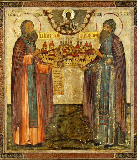 | Keywords: Icon Dimitry Prilutsky Ignaty Prilutsky.jpg en 17 century Vologda icon of Dimitry and Ignaty Prilutsky holding Spaso-Prilutsky Monastery ru Вологодская икона Димит ия и Игнатия П илуцких с Спасо-П илуцким монасты ём XVII век http //pravicon com/sv-876 Author century 17 Icons of Vologda Spaso-Prilutsky Monastery Icons of Dimitry Prilutsky Iconotoposes PD-old |