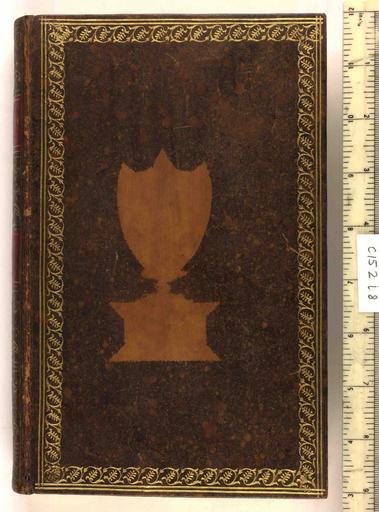 Keywords: Iconologie par figures, ou Traité des allégories, emblêmes..... - Upper cover (c152l8).jpg Style Pictorial Frame; Caption Upper cover; Colour Brown; Edge Unspecified exhibition history Decorative Technique Tooled in gold Stencilled; Cover Material Calf Part of the Charles Ramsden Collection of Signed Bindings In a contemporary gold-tooled calf binding signed by Courteval Macchi states; first half of century Paris bound by Courteval unusual central picture One of the greatest binders of his day; he worked from about 1796-1836f É Thoinan Biographie p 234 refers to his gaufrages and to his marbled calf His best bindings made before 1815 show much delicate work His first address was Carmes 1 and later 1809 at n 5 to which he often altered his label in ink C Ramsden French bookbinders p 59 Different kinds of his work kept at the Wittockiana Library Brussels show the variery of his work Bibliotheca Wittockiana Bruxelles Relieurs et reliures décorées 2000 n 4 36 43 69 71 111 119 120 158 159 160 Specimens of his work are illustrated in the Schiff collection S de Ricci French signed bindings II 189-200 Descamps-Scrive Bibliothèque I 22 Gumuchian Gumuchian Libraire Paris Catalogue XII p 59 and Sale catalogue Édouard Rahir VI 2018 object history Text 1789 ; Paris; Unspecified object type Cc-zero place of creation Binding France place of discovery Paul Culot Relieurs et reliures decorees en France au epoques Directoire et Empire Brussells 2000 Julien Flety Dictionnaire des relieurs francais ayant exerce de 1800 a nos jours 1988 British Library image http //www bl uk/catalogues/bookbindings/LargeImage aspx RecordId 020-000000566 ImageId ImageId 39888 Copyright BL Iconologie par figures ou Traité des allégories emblêmes Uploaded with GWToolset Iconologie par figures ou Traité des allégories emblêmes - Upper cover c152l8 http //www webarchive org uk/bldatasets/bindings/4384_4 jpg 19th-century bookbinding Bookbinding British Library Bookbindings |