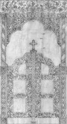 | Keywords: iconostasis iconostasis altar altar door church door church input architecture goal wooden door portal wood carving ornament door archway carving decorated frieze christian catholic greek orthodox orthodox relief decorated portal sketch drawing pencil drawing black and white |