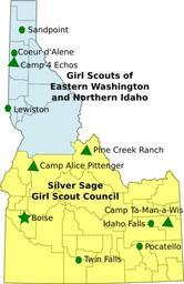 Keywords: Idaho-gsusa.svg Girl Scout Councils in Idaho own Originally uploaded on en wikipedia 12-29-2008 Uploaded on Commons at 2012-03-20 17 19 40 UTC /Originally uploaded at 2008-12-30 01 01 21 Emma Pease Transferred by evrik/Originally uploaded by Erp Erp en en Category Girl Scouts of the USA Council maps Original upload log page en wikipedia Idaho-gsusa svg Upload date User Bytes Dimensions Comment 2008-12-30 01 01 21 Erp 131540 5061×7805 <small><nowiki> Girl Scout Councils in Idaho my work based on the wikipedia county map 12-29-2008 Emma Pease </nowiki></small> Scouting in Idaho Girl Scouts of the USA Council maps |