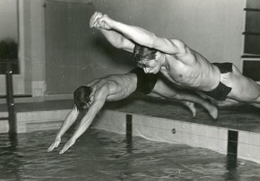 Keywords: idrett andre verdenskrig andreverdenskrig nordmenn i sverige under krigen nordmennisverigeunderkrigen 2. verdenskrig 2verdenskrig sport okkupasjonstiden Norsk idrettsliv i Sverige Et svensk idrettsinstitutt på Bosöen i Stockholms skjærgård har ved forskjellige anledninger vært stilt til disposisjon for det norske Idrettskontoret i Stockholm. Bildet viser deltagerne ved et kurs for utdannelse av idrettsinstruktører. To av deltagerne stuper ut i svømmebassenget. Stockholm 24.1.45. RA/PA-1209/Uc/71/4/ S 5389 Norsk idrettsliv i Sverige Et svensk idrettsinstitutt på Bosöen i Stockholms skjærgård har ved forskjellige anledninger vært stilt til disposisjon for det norske Idrettskontoret i Stockholm. Bildet viser deltagerne ved et kurs for utdannelse av idrettsinstruktører. To av deltagerne stuper ut i svømmebassenget. Stockholm 24.1.45. RA/PA-1209/Uc/71/4/ S 5389 |