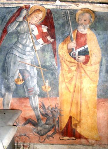 Keywords: Ignoto XV secolo Michele Pietro Favria(TO).jpg San Pietro Vecchio church School of Martino Spanzotti St Michael and St Peter Favria Turin Italy Own 2007-09-30 Laurom San Pietro Vecchio Favria Frescos in Favria 15th-century paintings of Saint Peter Saint Michael and the dragon Martino Spanzotti 15th-century frescos in Italy Frescos of Saint Michael |