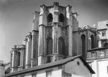 Keywords: gótico arquitectura convento do carmo conventodocarmo hccity mário tavares chicó máriotavareschicó mário novais márionovais lisboa gótica arquitectura gótica arquitecturagótica Vista exterior. Fotógrafo: Mário Novais, 1899-1967. Orientador científico: Mário Tavares Chicó, 1905-1966. Data aproximada de produção da fotografia original: 1954. [CFT015.199.ic] Igreja do Convento do Carmo Mandado construír em 1389 pelo Condestável D. Nuno Álvares Pereira, este edifício sofreu diversas campanhas, que lhe foram alterando a feição inicial. De entre elas, destacam-se as realizadas durante o pós-terramoto de 1755, apesar de não terem observado a necessidade de cobrir as naves, o cruzeiro e o transepto da igreja, quer devido à ausência dos meios necessários ao seu restauro e/ou adaptação, como de uma certa postura assumida no âmbito da teoria de conservação e restauro mantida pelos nossos mais destacados intelectuais desde, pelo menos, o 1.º quartel de oitocentos. De planta de cruz latina, constituída por três naves de cinco tramos, transepto saliente e cabeceira escalonada com a capela-mor ladeada por quatro absidíolos de diferentes dimensões - quer em largura, como em profundidade -, o seu frontespício encontra-se dividido em três panos, terminando em empena os laterais, rasgando-se por um amplo vão rectangular. Contrafortado com portal de arco com seis arquivoltas sobre colunas de capitéis vegetalistas, e inscrito em alfiz, o seu corpo central termina com uma rosácea truncada. Interiormente, as suas naves encontram-se apartadas por intermédio de pilares cruciformes, de capitéis vegetalistas e arcos quebrados, sendo que as naves laterais possuem, cada uma, quatro capelas, de arco igualmente quebrado, e emolduradas por colunas segmentadas, coroadas por janelas de vão curvo, no intervalo das quais encontramos mísulas de arranque das abóbadas. Desde 1864 que serve, simultaneamente, de sede da Associação dos Arqueólogos Portugueses e de espaço museológico - Museu Arqueológico do Carmo (MAC), também ele pertença desta sociedade secular. (Fonte IPPAR - tinyurl.com/457kc5) Vista exterior. Fotógrafo: Mário Novais, 1899-1967. Orientador científico: Mário Tavares Chicó, 1905-1966. Data aproximada de produção da fotografia original: 1954. [CFT015.199.ic] Igreja do Convento do Carmo Mandado construír em 1389 pelo Condestável D. Nuno Álvares Pereira, este edifício sofreu diversas campanhas, que lhe foram alterando a feição inicial. De entre elas, destacam-se as realizadas durante o pós-terramoto de 1755, apesar de não terem observado a necessidade de cobrir as naves, o cruzeiro e o transepto da igreja, quer devido à ausência dos meios necessários ao seu restauro e/ou adaptação, como de uma certa postura assumida no âmbito da teoria de conservação e restauro mantida pelos nossos mais destacados intelectuais desde, pelo menos, o 1.º quartel de oitocentos. De planta de cruz latina, constituída por três naves de cinco tramos, transepto saliente e cabeceira escalonada com a capela-mor ladeada por quatro absidíolos de diferentes dimensões - quer em largura, como em profundidade -, o seu frontespício encontra-se dividido em três panos, terminando em empena os laterais, rasgando-se por um amplo vão rectangular. Contrafortado com portal de arco com seis arquivoltas sobre colunas de capitéis vegetalistas, e inscrito em alfiz, o seu corpo central termina com uma rosácea truncada. Interiormente, as suas naves encontram-se apartadas por intermédio de pilares cruciformes, de capitéis vegetalistas e arcos quebrados, sendo que as naves laterais possuem, cada uma, quatro capelas, de arco igualmente quebrado, e emolduradas por colunas segmentadas, coroadas por janelas de vão curvo, no intervalo das quais encontramos mísulas de arranque das abóbadas. Desde 1864 que serve, simultaneamente, de sede da Associação dos Arqueólogos Portugueses e de espaço museológico - Museu Arqueológico do Carmo (MAC), também ele pertença desta sociedade secular. (Fonte IPPAR - tinyurl.com/457kc5) |
