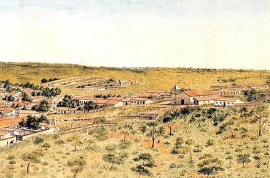 Keywords: Igreja do Rosario (Prospecto da Villa do Bom Jesus de Cuyaba).jpg Detalhe do Prospecto da Villa do Bom Jesus de Cuyabá feito durante a passagem da expedição de Alexandre Rodrigues Ferreira por Cuiabá Mato Grosso Brasil tendo em destaque a Igreja de Nossa Senhora do Rosário e São Benedito Collection of Museu Bocage de Lisboa Portugal 1789-1792 José Joaquim Freire probable PD-old-100 Retouch in blotchs and scratchs Mateus Hidalgo Igreja de Nossa Senhora do Rosário e São Benedito Watercolor paintings of landscapes |
