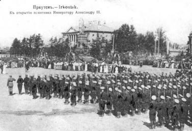 | Keywords: Иркутск. Памятник Александру III. Торжественное открытие.jpg И кутск Памятник Александ у III То жественное отк ытие и освящение памятника импе ато у Александ у III 30 августа 1908 Фото И С Жутеева http //www ageirk baikal ru/ 1908 Авто неизвестен PD-old Historical images of Irkutsk Postcards of Irkutsk |