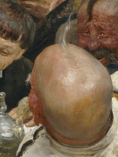 Keywords: Ilja Jefimowitsch Repin - Zaporozhian Cossacks (image detail) 8.jpg Artwork title Saporoschzen schreiben dem türkischen Sultan einen Brief Bilddetail Les Cosaques zaporogues écrivant une lettre au sultan de Turquie detail The Zaporozhye Cossacks Replying to the Sultan image detail oil canvas cm 217 361 institution Russian Museum Yorck derivative work Hic et nunc 1878-1891 Creator Ilja Jefimowitsch Repin http //mail wikipedia org/pipermail/wikide-l/2005-April/012195 html Other versions <gallery>Ilja Jefimowitsch Repin 009 jpg Original</gallery> <gallery> Ilja Jefimowitsch Repin - Zaporozhian Cossacks image detail 1 jpg image detail Ilja Jefimowitsch Repin - Zaporozhian Cossacks image detail 2 jpg image detail Ilja Jefimowitsch Repin - Zaporozhian Cossacks image detail 3 jpg image detail Ilja Jefimowitsch Repin - Zaporozhian Cossacks image detail 4 jpg image detail Ilja Jefimowitsch Repin - Zaporozhian Cossacks image detail 5 jpg image detail Ilja Jefimowitsch Repin - Zaporozhian Cossacks image detail 6 jpg image detail Ilja Jefimowitsch Repin - Zaporozhian Cossacks image detail 7 jpg image detail Ilja Jefimowitsch Repin - Zaporozhian Cossacks image detail 9 jpg image detail </gallery> cropped Hic et nunc Ilja Jefimowitsch Repin 009 jpg PD-old-70 PD-Art-YorckProject Details of Reply of the Zaporozhian Cossacks 1880-1891 Oseledets |