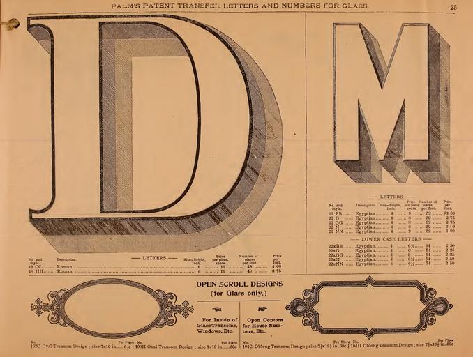 MAKE A MEME View Large Image Public Domain Book:Illustrated sample book & price list of Palm's patent transfer letters ornaments & trade designs for signs, wagons, cars, machines, etc manufactured by the Palm Letter Co Published 1901 in Cincinnati . ...