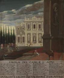 Keywords: Illustration of the fable about the lapdog and the donkey - Unknown - Google Cultural Institute.jpg author ~ 1700 oil canvas cm 85 69 9 National Museum of Slovenia https //www google com/culturalinstitute/asset-viewer/illustration-of-the-fable-about-the-lapdog-and-the-donkey/gwGBoSv8QThpCA Google Art Project Custom license marker 2015 03 01 PD-old-100 Uploaded with UploadWizard Paintings uploaded by Chris Woodrich 18th-century oil on canvas paintings in Slovenia 18th-century paintings in the National Museum of Slovenia 1700 paintings in Slovenia Paintings by unknown painters in Slovenia 18th-century landscape paintings in Slovenia 1700s landscape paintings 1700 oil on canvas paintings Fables |
