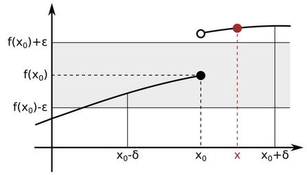 Keywords: Illustration for epsilon-delta definition of continuity 9.svg en This image is part of a series of images illustrating the epsilon-delta-definition of continuity de Dieses Bild ist Teil einer Serie von Abbildungen die das Epsilon-Delta-Kriterium der Stetigkeit illustrieren 2016-08-16 own http //kulla me Stephan Kulla User Stephan Kulla other versions <gallery widths 400 heights 150> Illustration for epsilon-delta definition of continuity 1 svg A continuous function Illustration for epsilon-delta definition of continuity 2 svg A point x_0 f x_0 of the function graph Illustration for epsilon-delta definition of continuity 3 svg An epsilon bound around the f x_0 Illustration for epsilon-delta definition of continuity 4 svg A delta neighborhood fulfilling the epsilon-delta-criterion Illustration for epsilon-delta definition of continuity 5 svg A smaller epsilon bound around f x_0 Illustration for epsilon-delta definition of continuity 6 svg A delta neighborhood fulfilling the epsilon-delta-criterion for the smaller epsilon Illustration for epsilon-delta definition of continuity 7 svg A function with an jump at x_0 Illustration for epsilon-delta definition of continuity 8 svg An epsilon bound around the f x_0 Illustration for epsilon-delta definition of continuity 9 svg A delta neighborhood not fulfilling the epsilon-delta-criterion Illustration for epsilon-delta definition of continuity 10 svg A smaller delta neighborhood not fulfilling the epsilon-delta-criterion </gallery> other fields + cc-zero Continuity |