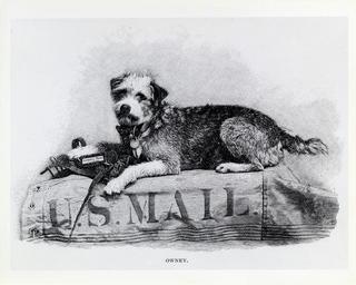 Keywords: smithsonian institution smithsonianinstitution dog owney usps railway mail service railwaymailservice c. 1895 c1895 black and white blackandwhite canine us mail usmail mail carrier bag mailcarrierbag postal mascot postalmascot postal images postalimages postal history postalhistory dog mascot dogmascot mail images mailimages national postal museum nationalpostalmuseum mail across the commons mailacrossthecommons drawing black and white Description: This is an illustration of Owney, the dog who was the unofficial mascot of the Railway Mail Service in the 1890s. Owney is shown posed on a U.S. mail sack. Creator/Photographer: Unidentified photographer Medium: Black and white photographic print Culture: American Geography: USA Date: 1895 Collection: Owney Collection Persistent URL: arago.si.edu/index.asp?con=2&cmd=1&id=194298 Repository: National Postal Museum Accession number: A.2006-46 Description: This is an illustration of Owney, the dog who was the unofficial mascot of the Railway Mail Service in the 1890s. Owney is shown posed on a U.S. mail sack. Creator/Photographer: Unidentified photographer Medium: Black and white photographic print Culture: American Geography: USA Date: 1895 Collection: Owney Collection Persistent URL: arago.si.edu/index.asp?con=2&cmd=1&id=194298 Repository: National Postal Museum Accession number: A.2006-46 |