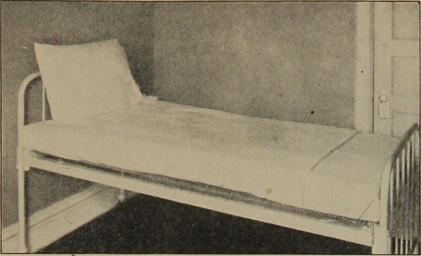 Keywords: bookid:54731110r.nlm.nih.gov bookid54731110rnlmnihgov bookyear:1919 bookyear1919 bookdecade:1910 bookdecade1910 bookcentury:1900 bookcentury1900 bookauthor:lippitt__louisa_c___louisa_christiana___author bookauthorlippittlouisaclouisachristianaauthor booksubject:hygiene booksubjecthygiene booksubject:home_nursing booksubjecthomenursing bookcontributor:u_s__national_library_of_medicine bookcontributorusnationallibraryofmedicine booksponsor:open_knowledge_commons__u_s__national_library_of_medicine booksponsoropenknowledgecommonsusnationallibraryofmedicine bookleafnumber:118 bookleafnumber118 bookcollection:usnationallibraryofmedicine bookcollectionusnationallibraryofmedicine bookcollection:medicineintheamericas bookcollectionmedicineintheamericas bookcollection:medicalheritagelibrary bookcollectionmedicalheritagelibrary bookcollection:americana bookcollectionamericana monochrome bookid:54731110r.nlm.nih.gov bookid54731110rnlmnihgov bookyear:1919 bookyear1919 bookdecade:1910 bookdecade1910 bookcentury:1900 bookcentury1900 bookauthor:lippitt__louisa_c___louisa_christiana___author bookauthorlippittlouisaclouisachristianaauthor booksubject:hygiene booksubjecthygiene booksubject:home_nursing booksubjecthomenursing bookcontributor:u_s__national_library_of_medicine bookcontributorusnationallibraryofmedicine booksponsor:open_knowledge_commons__u_s__national_library_of_medicine booksponsoropenknowledgecommonsusnationallibraryofmedicine bookleafnumber:118 bookleafnumber118 bookcollection:usnationallibraryofmedicine bookcollectionusnationallibraryofmedicine bookcollection:medicineintheamericas bookcollectionmedicineintheamericas bookcollection:medicalheritagelibrary bookcollectionmedicalheritagelibrary bookcollection:americana bookcollectionamericana monochrome Identifier: 54731110R.nlm.nih.gov Title: Personal hygiene and home nursing : a practical text for girls and women for home and school use Year: 1919 (1910s) Authors: Lippitt, Louisa C. (Louisa Christiana), author Subjects: Hygiene Home Nursing Publisher: Contributing Library: U.S. National Library of Medicine Digitizing Sponsor: Open Knowledge Commons, U.S. National Library of Medicine View Book Page: Book Viewer About This Book: Catalog Entry View All Images: All Images From Book Click here to view book online to see this illustration in context in a browseable online version of this book. Text Appearing Before Image: top. The top sheet is pulled down well at the foot, and nottucked in at the side as far as the upper sheet, so that openingthe bed will not loosen the lower sheet. Rubber sheets and draw sheets. Rubber and draw sheets areused for a bed patient. For ordinary cases a small rubber sheetis sufficient. This goes over the linen sheet, and must extendfrom at least the waist line of the patient down almost to her feetand be wide enough to tuck well under the mattress at the sides.It is not a good plan to pin the rubber sheet to the mattress withsafety pins, as the weight and movements of the patient are aptto tear it at the places where it is pinned. For a case of typhoid fever, or where there is inability to retainurine or feces, it is better to have a rubber sheet over the wholemattress, as well as the narrow one over the bottom sheet. Largerubber sheets are made, with reinforced holes at the sides and endsinto which tapes can be run and the sheet fastened to the frame ofthe bed. Bed Making Text Appearing After Image: Fig. 47. If the work is correctly and smoothly done, the sheetshould form a diagonal fold at the corner of the mattress. The draw sheet is drawn crosswise on the bed over the smallrubber sheet. It should be wide enough completely to cover thesmall rubber one, and is useful (i) to cover the rubber sheet;(2) to protect the bottom sheet in the part where it is most likelyto be soiled; (3) because it is easy to change; (4) because it iseasier to wash than the large sheet; (5) because it can be easilyand quickly tightened and smoothed under the patient. Changing the sheets with the patient in the bed. There areseveral methods of changing the sheets on the bed while the patientis lying in it. The method to be used in any given case dependsupon the condition of the patient and the preference of the nurse.The following is a satisfactory way, when the patient can be turned: (1) Put her on her side, with her back toward you. (2) Remove the hea\y top covers, leaving in winter just enoughlight bl Note About Images Please note that these images are extracted from scanned page images that may have been digitally enhanced for readability - coloration and appearance of these illustrations may not perfectly resemble the original work. Identifier: 54731110R.nlm.nih.gov Title: Personal hygiene and home nursing : a practical text for girls and women for home and school use Year: 1919 (1910s) Authors: Lippitt, Louisa C. (Louisa Christiana), author Subjects: Hygiene Home Nursing Publisher: Contributing Library: U.S. National Library of Medicine Digitizing Sponsor: Open Knowledge Commons, U.S. National Library of Medicine View Book Page: Book Viewer About This Book: Catalog Entry View All Images: All Images From Book Click here to view book online to see this illustration in context in a browseable online version of this book. Text Appearing Before Image: top. The top sheet is pulled down well at the foot, and nottucked in at the side as far as the upper sheet, so that openingthe bed will not loosen the lower sheet. Rubber sheets and draw sheets. Rubber and draw sheets areused for a bed patient. For ordinary cases a small rubber sheetis sufficient. This goes over the linen sheet, and must extendfrom at least the waist line of the patient down almost to her feetand be wide enough to tuck well under the mattress at the sides.It is not a good plan to pin the rubber sheet to the mattress withsafety pins, as the weight and movements of the patient are aptto tear it at the places where it is pinned. For a case of typhoid fever, or where the