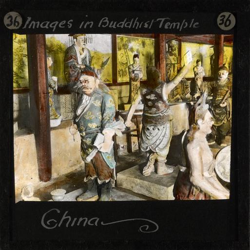 Keywords: Images in Buddhist Temple, China, ca. 1882-ca. 1936 (imp-cswc-GB-237-CSWC47-LS8-036).jpg en <br> Images in Buddhist Temple China ca 1882-ca 1936 Photograph of the interior of a Buddhist Temple A number of statues can be seen at close up range and there are decorative panels on the walls ; This belongs to a series of Church of Scotland Foreign Missions Committee lantern slides relating to the Scottish missionary Dugald Christie Dugald Christie was born in Glencoe in Scotland and studied medicine under the auspices of the Edinburgh Medical Missionary Society In 1882 along with his first wife Elizabeth he went to Manchuria to work as a medical missionary of the United Presbyterian Church of Scotland He worked initially in Newchang and later moved to the capital of Mukden where he opened Manchuriaas first hospital in 1884 In 1912 he established Mukden Medical College Dugald Christie retired in 1923 and died in Edinburgh in 1936 Photographer Unknown Subject personal name Christie Dugald 1855-1936 Filename imp-cswc-GB-237-CSWC47-LS8-036 tif Coverage date 1882/1936 Part of collection International Mission Photography Archive ca 1860-ca 1960 Geographic subject region Manchuria Type images Part of subcollection Photographs from the Centre for the Study of World Christianity University of Edinburgh U K ca 1900-ca 1940s Repository name Centre for the Study of World Christianity Archival file impaunpub_Volume7/1698 url Repository address The University of Edinburgh School of Divinity New College Mound Place Edinburgh EH1 2LX United Kingdom Geographic subject country China Format aacr2 1 lantern slide 8 x 8 cm Geographic subject continent Asia Rights Contact the repository for details Part of series Dugald Christie LS8 Repository email divinity-CSWC ed ac uk Subject lcsh Keyword Temples Date created 1882/1936 Publisher of the digital version University of Southern California Libraries Subject aat genre interior views Format aat lantern slides Legacy record ID impa-m69147 Access conditions http //www ed ac uk/schools-departments/divinity/research/centres/world-christianity/collections-resources File GB 237 CSWC47/LS8/36 1882/1936 author http //digitallibrary usc edu/cdm/ref/collection/p15799coll123/id/64817 PD-old-70-1923 Magic lantern images Images from USC Digital Library uploaded by Fæ International Mission Photography Archive ca 1860-ca 1960 |