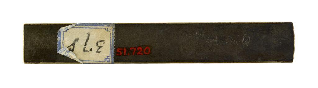 | Keywords: Imai Nagatake - Kozuka with a Spade and Orchids - Walters 51720 - Back.jpg Two orchids and leaves are tied to a spade The background is a fish egg pattern nanakoji with a raised rim The artist signed the kozuka on the reverse between 1818 1882 late Edo-Meiji shakudo gold silver copper cm 9 6 accession number 51 720 39185 Henry Walters Baltimore date and mode of acquisition unknown Walters Art Museum Henry Walters Acquired by Henry Walters Signature Heianjô Imai Nagatake; Number On sticker edged with a blue trellis pattern 378 place of origin Kyoto Japan Walters Art Museum license Kozuka in the Walters Art Museum Imai Nagatake Media contributed by the Walters Art Museum needs category review |