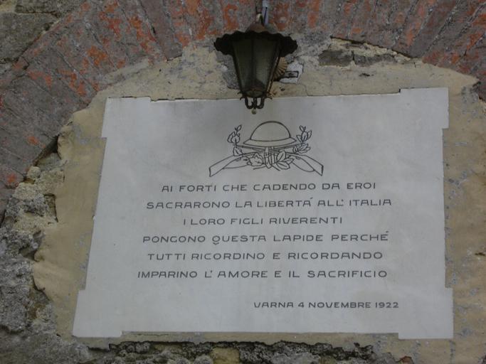 Keywords: IMG 0294 S.Giovanni Battista a Varna, Lapide.JPG it Lapide della Chiesa di San Giovanni Battista a Varna comune di Gambassi Terme provincia di Firenze en Commemorative Stone at the Church of John the Baptist in Varna Municipality Gambassi Terme Province of Florence de Gedenkstein an der Kirche žJohannes der Täufer in Varna Gemeinde Gambassi Terme Provinz Florenz Own Matteo Tani 05ott 2008 43 56668 10 976602 type landmark_region IT_heading SSW San Giovanni Battista a Varna |