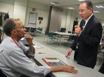 Keywords: kalamazoo public library kalamazoopubliclibrary author books writing literature education indoor Author Walter Dean Myers, Library of Congress National Ambassador for Young People's Literature, at Kalamazoo Public Library with KPL and KPS staff and administrators, August 7, 2013. www.kpl.gov photo by Keith Howard Author Walter Dean Myers, Library of Congress National Ambassador for Young People's Literature, at Kalamazoo Public Library with KPL and KPS staff and administrators, August 7, 2013. www.kpl.gov photo by Keith Howard