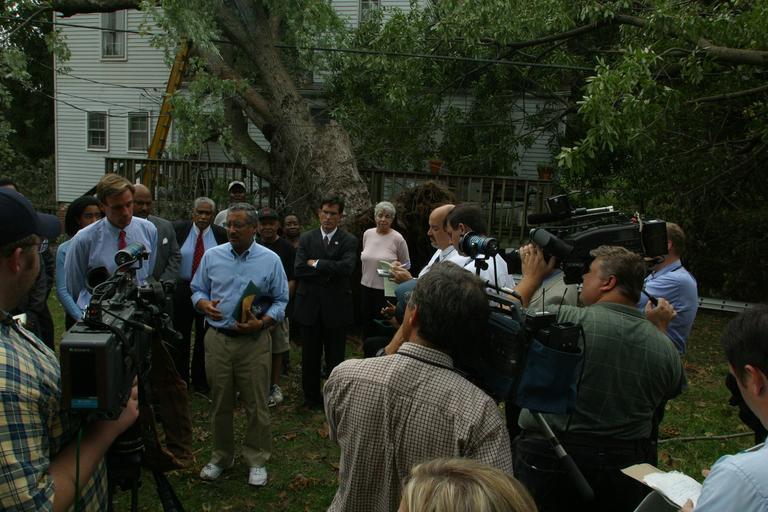 | Keywords: people outdoor Governor Mark R. Warner (left) visits a Richmond neighborhood after Hurricane Isabel, assessing the damages and speaking with citizens, September 22, 2003. With U.S. Representative Eric Cantor (R-7th District (right) and U.S. Representative Bobby Scott (D-3rd District) (center). Governor Mark R. Warner, Press Office records, 2001-2006 (bulk 2002-2006), accession 42460, Box 64 cd 2, 9-22-03 Tour of Richmond\205CANON Governor Mark R. Warner (left) visits a Richmond neighborhood after Hurricane Isabel, assessing the damages and speaking with citizens, September 22, 2003. With U.S. Representative Eric Cantor (R-7th District (right) and U.S. Representative Bobby Scott (D-3rd District) (center). Governor Mark R. Warner, Press Office records, 2001-2006 (bulk 2002-2006), accession 42460, Box 64 cd 2, 9-22-03 Tour of Richmond\205CANON |