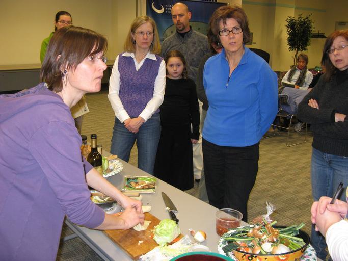 Keywords: kalamazoo library health cooking indoor A Kalamazoo Public Library program on January 27, 2010, complete with recipes, food facts, cooking tips, and samples from Elizabeth Forest, People’s Food Co-op’s queen of fast, nutritionally-packed, delicious, family-friendly foods. www.kpl.gov/ A Kalamazoo Public Library program on January 27, 2010, complete with recipes, food facts, cooking tips, and samples from Elizabeth Forest, People’s Food Co-op’s queen of fast, nutritionally-packed, delicious, family-friendly foods. www.kpl.gov/ |