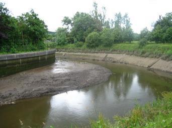 Keywords: Derwent turns to left. The weir is just round the corner, and the allotments are off to the right.