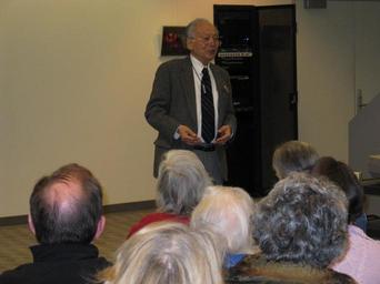 Keywords: kalamazoo library community reading wwii internment service indoor On Thursday, March 25, 2010, guest speakers Dr. Iwao Ishino, professor of anthropology, and Dr. Sadayoshi Omoto, professor of art, both retired from Michigan State University, shared their stories of internment in a WRA camp and WWII military intelligence service. Dr. Takashi Yoshida, Western Michigan University professor of history, was moderator. www.kpl.gov/reading-together/2010/ On Thursday, March 25, 2010, guest speakers Dr. Iwao Ishino, professor of anthropology, and Dr. Sadayoshi Omoto, professor of art, both retired from Michigan State University, shared their stories of internment in a WRA camp and WWII military intelligence service. Dr. Takashi Yoshida, Western Michigan University professor of history, was moderator. www.kpl.gov/reading-together/2010/