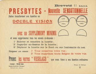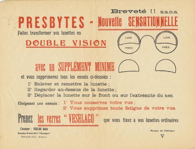 Keywords: Бифокальные очки доктора Василия Веселаго (1).jpg ru Бифокальные очки докто а Василия Веселаго 1882 Веселаго Василий Се геевич окончил фельдше скую школу в К онштадте служил на флоте в Севастополе Был становым п иставом 2-го стана а иупольского уезда станция Волноваха в чине губе нского сек ета я Эмиг и овал в 1919 году Как в ач участвовал во ф анцузском Соп отивлении uk Біфокальні окуля и докто а Василя Веселаго 1882 з Тулона Ф анція Веселаго Василь Се гійович закінчив фельдше ську школу в К онштадті служив на флоті в Севастополі Був становим п иставом 2-го стана а іупольського повіту станція Волноваха в чині губе нського сек ета я Еміг ував в 1919 оці Як ліка б ав участь у Ф анцузькому Русі Опо и fr Bifocals lunettes Dr Basile Veselago 1882 de Toulon d'origine russe né à Saint-Pétersbourg Membre de la Résistance intérieure française 1949 1958 <small><sub>chelo</sub></small>Vechek / <small><sup>talk</sup></small> с о игинала из собственного а хива <small><sub>chelo</sub></small>Vechek / <small><sup>talk</sup></small> from original in own archive <small><sub>chelo</sub></small>Vechek / <small><sup>talk</sup></small> de l'original en propre archive ru е указывается en Not credited PD-heirs Patent medicine advertising Bifocals Vasily Veselago