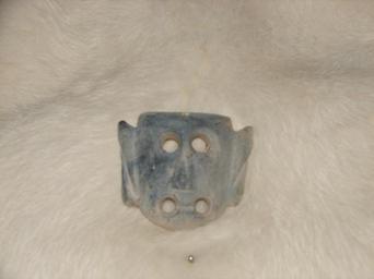 Keywords: 玉 面具 三星堆 玉而富 1038.jpg zh-tw 器名:玉 具 器別:生 紋飾:立體 泌色:無 鐵灰色﹞ 代:三星堆文化 礦物學名:岫岩玉 黄玉﹞ 三星堆文化-年代約4800至2200年 三星堆文化-小件配飾品 數百種的 形 c形龍斧鋤器 猪龍斧鋤器 玉梟 玉鷹斧鋤器﹞ 具 異形獸斧鋤器 玉蟬複合體等 此器質化晶變 次晶增生 受人工拋光打磨 留原 咬風化 生 盤玩,三 立體 肖生﹞ 形特別 曲線流暢 雕工傳神 創意佳 術品﹞ own 玉 富 2008-12-18 Sanxingdui |