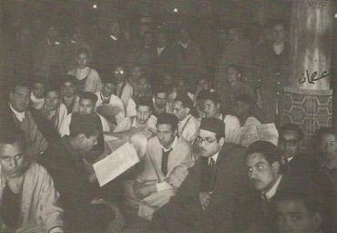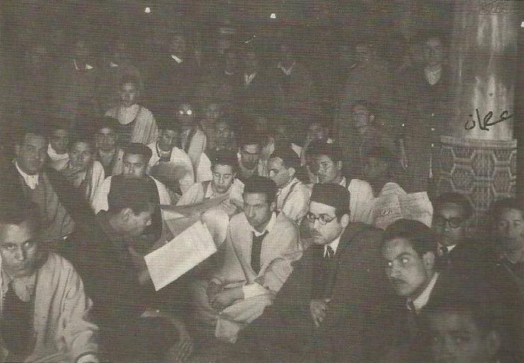 Keywords: ليلة إضراب الجوع في جامع الزيتونة.jpg ar ليلة إضراب الجوع في جامع الزيتونة يوم 10 أفريل 1950 ويظهر في الصورة الحبيب نويرة بالبرنس والنظارات حفظه الله وعلى يساره عبد الله بشير وأمامه محمود حميدة يطالع صحيفة وخلفه في المقدمة الحبيب بن سالم ووراءه الوالد محمد الصغير الشابي وعن يساره قاسم حرمل رحمهم الله 1950-04-10 facebook author other versions Custom license marker 2015 08 04 PD-Tunisia Uploaded with UploadWizard Hunger strikes Prayer hall of the Zitouna Mosque |
