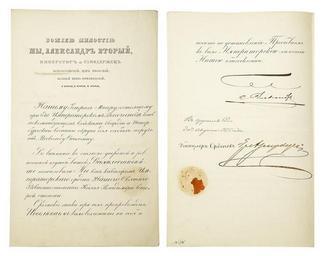 | Keywords: Наградной документ на Всеволода Сипягина.jpg en Award document awarding Vsevolod Sipyagin Order of St Vladimir 2nd degree ru аг адной документ о наг аждении Всеволода Сипягина о деном Святого Владими а 2-й степени http //www auction-imperia ru/wdate php t offline i 4537 Импе ато Александ II 30 августа 1875 года PD-RusEmpire Order of St Vladimir |