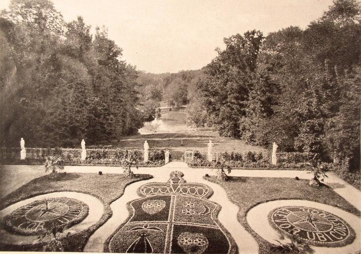 | Keywords: Диканька. Герб роду Кочубеїв на квітнику у дворі палацу..jpg uk Диканька Ð“ÐµÑ Ð± Ñ Ð¾Ð´Ñƒ Кочубеїв на квітнику у Ð´Ð²Ð¾Ñ Ñ– палацу en Dykan'ka Coat of arms of princely family Kochubey in the flower garden in the courtyard of the palace fr Dykan'ka Blason de la famille princière Kochubey dans le jardin de fleurs dans la cour du palais before 1917 Site http //www etoretro ru/pic28759 htm author Custom license marker 2013 11 26 PD-RusEmpire Uploaded with UploadWizard Kochubey Palace |