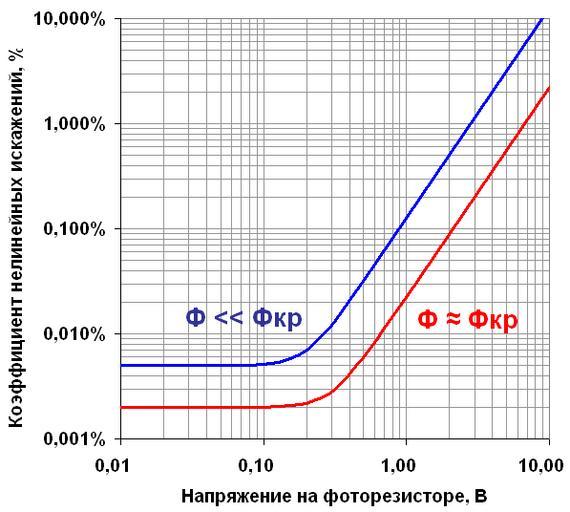Keywords: Кни оптопары по данным PerkinElmer.PNG ru Типичная зависимость коэффициента нелинейных искажений кадмиевого фото езисто а от п иложенного к нему пе еменного нап яжения по мате иалам PerkinElmer США Синяя линия - Кни для малых ненулевых у овней освещённостей высокое соп отивление фото езисто а К асная линия - для высокой освещённости малые соп отивления фото езисто а own Retired electrician 2011-04-17 thumb left legend in English Cc-zero Diagrams in Russian Vactrol