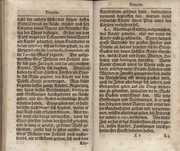 Keywords: JPGundlingB1 019.jpg JPGundlingB1_ jpg 018 020 This is a scan of the historical document with the title <br/>Geschichte und Thaten Kayser Konrad des Vierten aus dem Geschlecht der Herzoge von Schwaben / wie auch Kayser Wilhelms aus dem Geschlecht der Grafen von Holland/ Aus den Schriften selbiger Zeit und anderen Dokumenten own scan from original book 1719 Jacob Paul von Gundling Jacob_Paul_von_Gundling_B1 PD-old-100 |