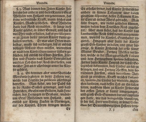 Keywords: JPGundlingB1 020.jpg JPGundlingB1_ jpg 019 021 This is a scan of the historical document with the title <br/>Geschichte und Thaten Kayser Konrad des Vierten aus dem Geschlecht der Herzoge von Schwaben / wie auch Kayser Wilhelms aus dem Geschlecht der Grafen von Holland/ Aus den Schriften selbiger Zeit und anderen Dokumenten own scan from original book 1719 Jacob Paul von Gundling Jacob_Paul_von_Gundling_B1 PD-old-100 |