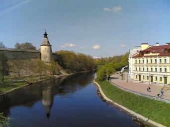 Keywords: Пскова с Троицкого моста.jpg ru Река Пскова Вид с Т оицкого Советского моста own PlatonPskov 2011-05-09 Cc-zero Pskova river Kremlin of Pskov Srednyaya Tower Pskov Buildings in Pskov