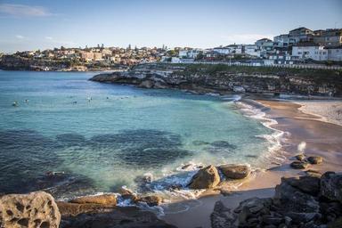 Keywords: daytime outdoor beach ocean landscape shore seaside coast Tamarama beach in Sydney Tamarama beach in Sydney