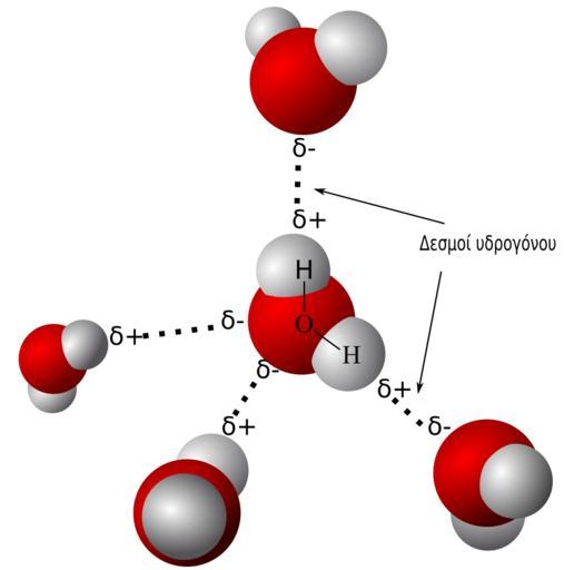 Keywords: Δεσμοί Η στο νερό.svg en Hydrogen bonds in water el Δεσμοί υδρογόνου στο νερό own Xhmikos 17/7/2011 Cc-zero Water diagrams Hydrogen bonding