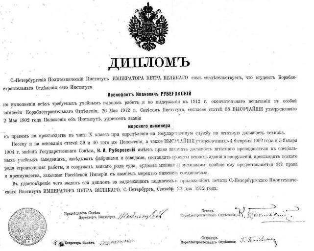 Keywords: Диплом К И Руберовского.jpg ru Диплом мо ского инжене е К И Рубе овского Домашний а хив Российская импе ия 1912-09-22 Cc-zero Documents of the Russian Empire