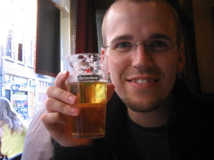 | Keywords: europe amsterdam heineken beer andy portrait people The coolest thing is that they fill the beer glass up in about 1 second from this high-speed tap, then they use this plastic knife and scrape the foam off the top and hand you a soaking dripping glass of beer. The coolest thing is that they fill the beer glass up in about 1 second from this high-speed tap, then they use this plastic knife and scrape the foam off the top and hand you a soaking dripping glass of beer. | ||||