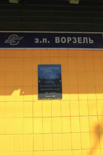 Keywords: Ворзель..JPG uk емо іальна табличка на залізничній станції Во зель 2014-03-22 11 25 06 own A1 З олено під час вікіекспедиції 22-03-2014 cc-zero Wikisubotnik 2014-03-22 Vorzel Uploaded with UploadWizard