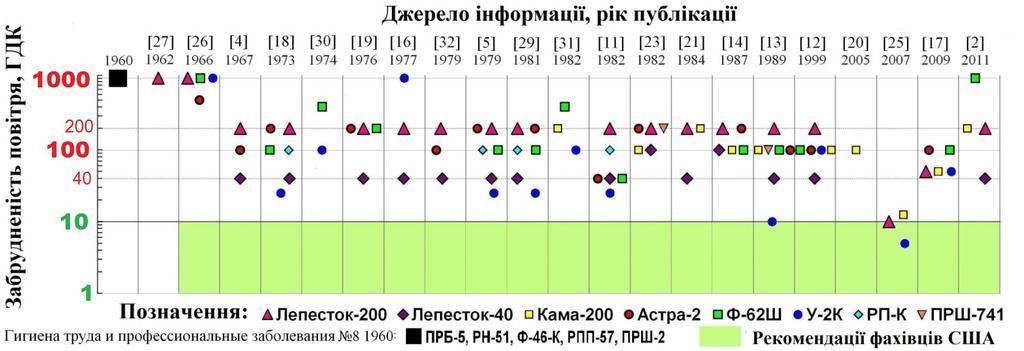 | Keywords: Максимальні рівні перевищення ГДК при застосуванні респіраторів-напівмасок (за рекомендаціями авторів з СРСР і РФ).jpg uk а діаг амі показані екомендовані області допустимого застосування еспі ато ів-полумасок ізних конст укцій авто и з СРСР і РФ Видно що екомендації не узгоджуються один з одним і що область застосування значно пе евищує межу безпечного застосування полумасок встановлену аме иканськими фахівцями на основі лабо ато них а ви обничих вимі ювань ефективності ЗІЗОД 2014-08-18 18 07 09 own AlexChirkin cc-zero Uploaded with UploadWizard Safety engineering Respirators |
