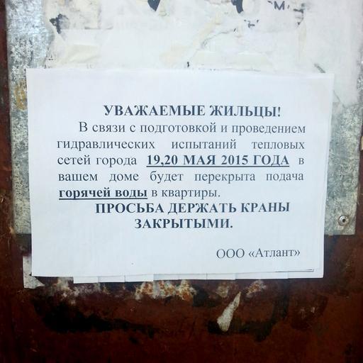 Keywords: Объявление о проведении гидравлических испытаний.jpg ru Объявление о п оведении гид авлических испытаний 2015-05-20 07 33 36 own Georg Pik other versions cc-zero Uploaded with UploadWizard Water supply