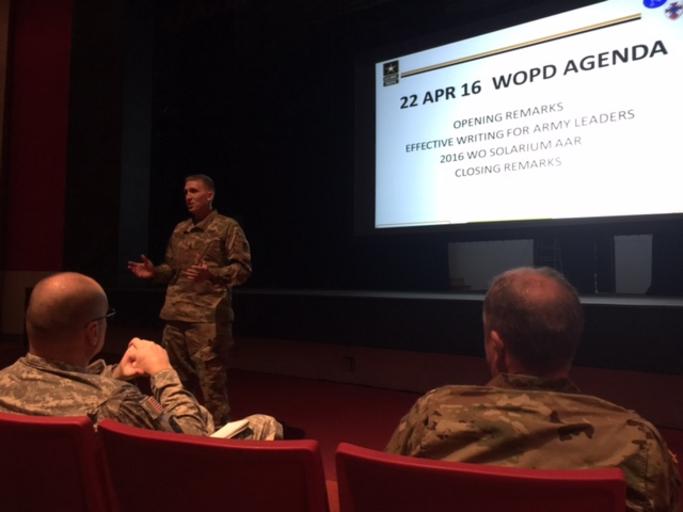 Keywords: 8th theater sustainment command 8ththeatersustainmentcommand usarpac sustainment professional development indoor The 8th Theater Sustainment Command hosted a Warrant Officer Professional Development forum, discussing career enhancing and development opportunities through education and familiarization of current Army initiatives and to increase understanding of the role Warrant Officers perform at the operational and strategic level while improving effectiveness in the 8th TSC’s mission of setting the theater. The 8th Theater Sustainment Command hosted a Warrant Officer Professional Development forum, discussing career enhancing and development opportunities through education and familiarization of current Army initiatives and to increase understanding of the role Warrant Officers perform at the operational and strategic level while improving effectiveness in the 8th TSC’s mission of setting the theater.