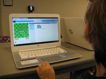 Keywords: kalamazoo kalamazoo public library kalamazoopubliclibrary code computer skills electronics display screen monitor screen computer screen indoor portable computer laptop KPL Code Camp: Kids and parents work together to solve problems and learn basic computer coding skills, then craft a "binary bracelet" to wear and take home. www.kpl,.gov KPL Code Camp: Kids and parents work together to solve problems and learn basic computer coding skills, then craft a "binary bracelet" to wear and take home. www.kpl,.gov