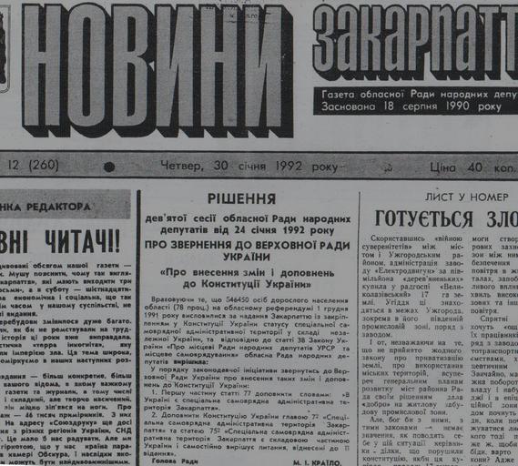 Keywords: Обращение девятой сессии областного Совета народных депутатов от 24 января 1992.jpg ru Об ащение девятой сессии областного Совета на одных депутатов от 24 янва я 1992 к Ве ховной Раде Ук аины «О внесении изменений и дополнений в Конституцию Ук аины» 1992-01-30 Газета официальный о ган Зака патского областного совета на одных депутатов Депутаты Зака патского областного совета 1991 other versions cc-zero Law of Ukraine Uploaded with UploadWizard Uploaded with UploadWizard Newspapers of Ukraine 1992