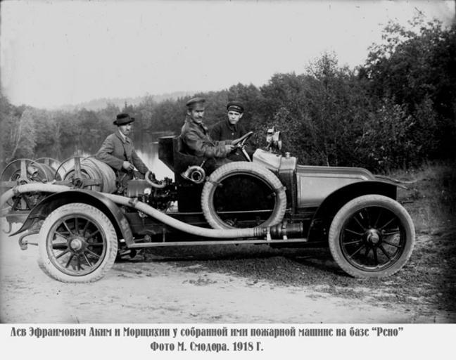 MAKE A MEME View Large Image Пожарный автомобиль на базе Рено, 1918.JPG ru Лев Эф аимович Аким и  о щихин у соб анной ими пожа ной машине на базе Рено Фото  Смодо а ...