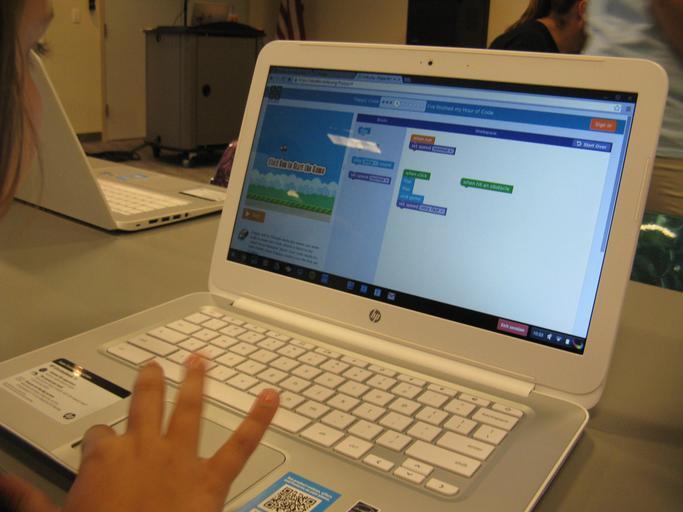 | Keywords: kalamazoo kalamazoo public library kalamazoopubliclibrary code computer skills portable computer electronics indoor laptop display screen screen computer screen monitor KPL Code Camp: Kids and parents work together to solve problems and learn basic computer coding skills, then craft a "binary bracelet" to wear and take home. www.kpl,.gov KPL Code Camp: Kids and parents work together to solve problems and learn basic computer coding skills, then craft a "binary bracelet" to wear and take home. www.kpl,.gov |