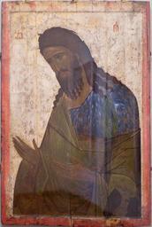 | Keywords: Святой Иоан Предтеча из деисусного чина.jpg СВЯТОЙ ИОА ПРЕДТЕЧА ИЗ ДЕИСУС ОГО ЧИ А 1387-1395 гг Константинополь П оисходит из х ама Зачатия Бого одицы се пуховского Высоцкого монасты я ДРЖ-2110 Русский узей ST JOHN T E BAPTIST FROM THE DEISIS TIER Between 1387 and 1395 Constantinople From the Vysotsky monastery; Serpukhov Russian Museum Russian Museum between 1387 1395 unknown photo by George Shuklin PD-old Icons of John the Baptist from Deisis Vysotsky chin 14th-century icons in the Russian museum |