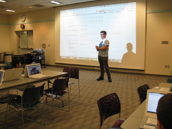 Keywords: kalamazoo kalamazoo public library kalamazoopubliclibrary code room indoor KPL Code Camp: Teens work together to solve problems while learning basic computer programming skills, www.kpl.gov KPL Code Camp: Teens work together to solve problems while learning basic computer programming skills, www.kpl.gov